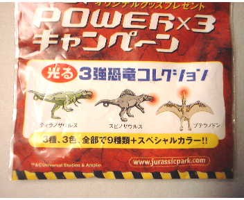 | 男のPOWER×3 キャンペーンオリジナルグッズ ジュラシックパークV 光る3強恐竜コレクション (2001年) |